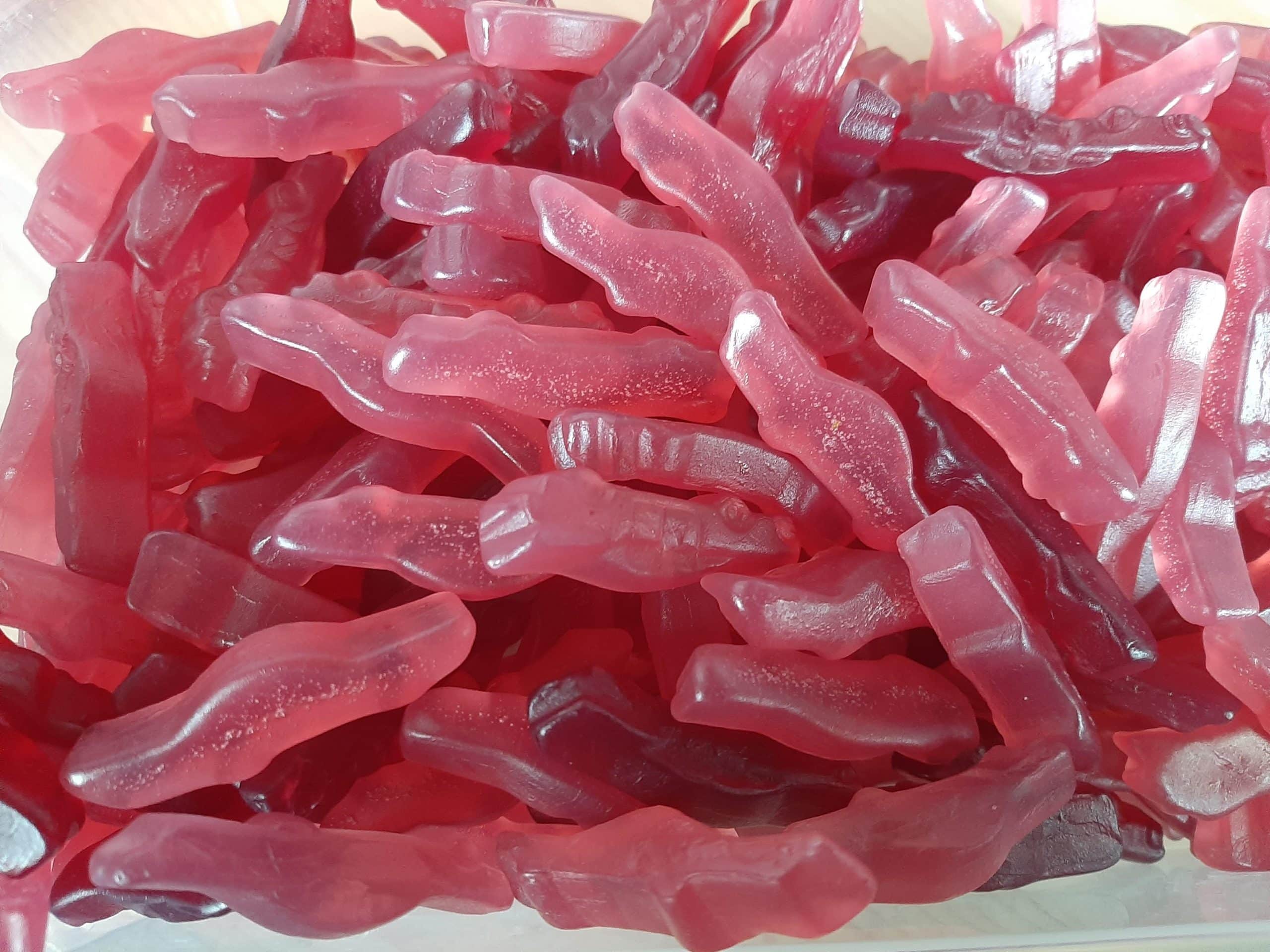 glucose-fructosestroop, suiker, gemodificeerd zetmeel, varkensgelatine, voedingszuur (appelzuur, azijnzuur), natuurlijke aroma’s, glansmiddel (carnaubawas), vruchten- en plantenconcentraten (zoete aardappel, wortel).